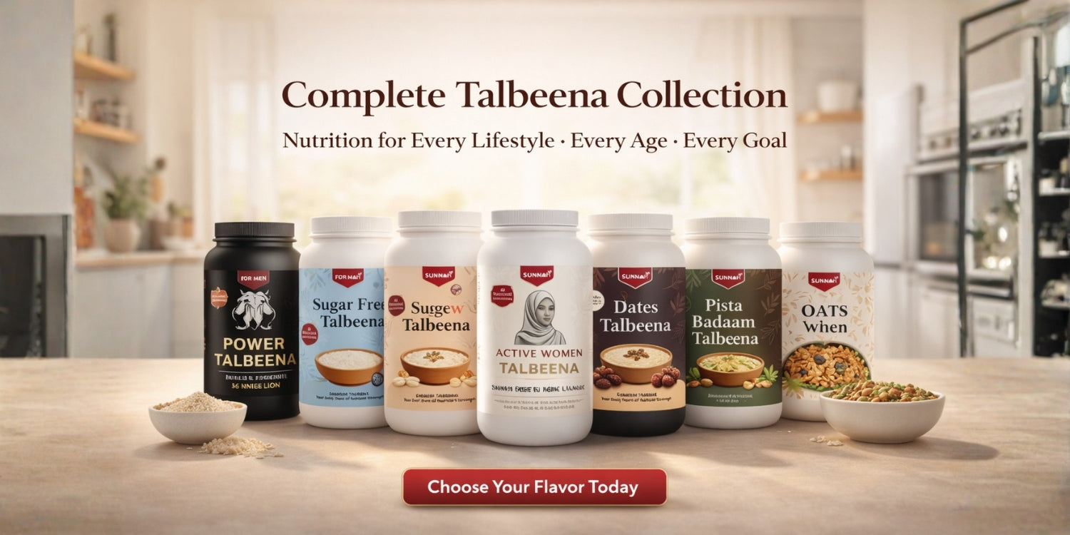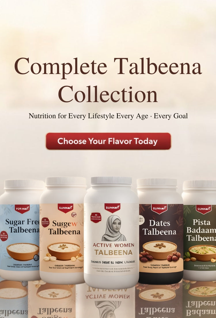 Our collection includes Power Talbeena, Active Women Talbeena, Pistachio Talbeena, Anjeer Talbeena, Flavoured Talbeena, Masala Oats, and Oats & Nuts, carefully formulated to support strength, balance, and everyday wellness.